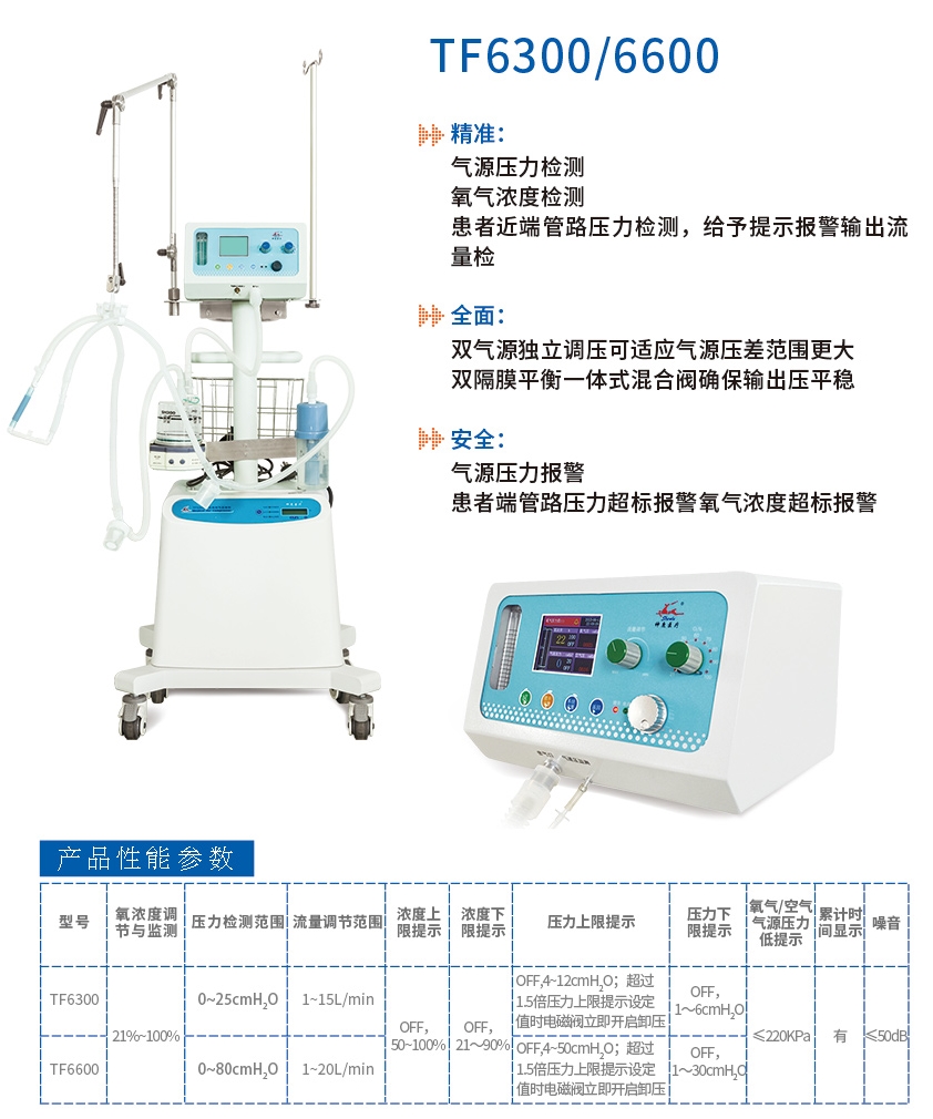 精准:气源压力检测,氧气浓度检测患者近端管路压力检测, 给予提示报警输出流量检